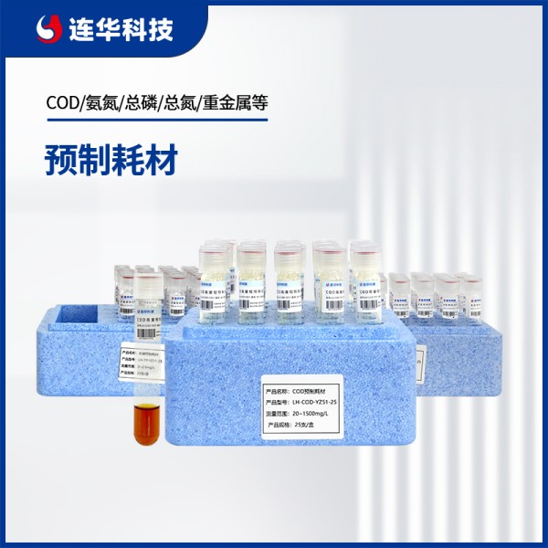 連華科技預制試劑覆蓋COD(0.7-15000mg/L,抗氯20000mg/L)、氨氮(0-150mg/L)、總磷(0-100mg/L)、總氮(0-150mg/L)等主流檢測指標,規(guī)格包含25/50/100樣,滿足不同場景需求,可無縫替代進口試劑,在性能與成本上均具備顯著優(yōu)勢。