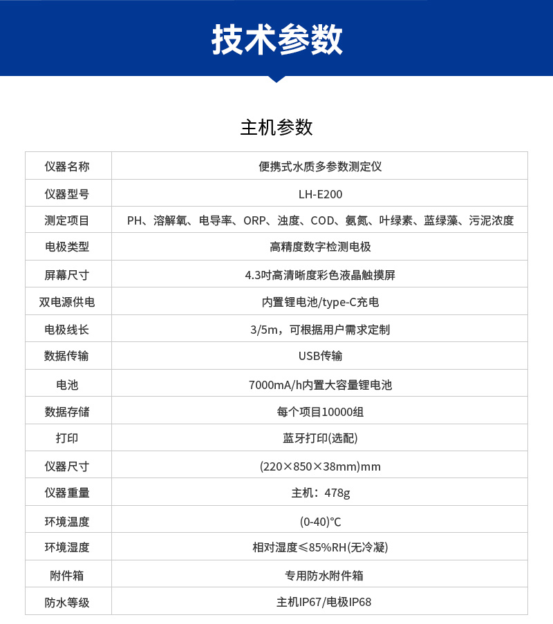 便攜式多參數(shù)水質(zhì)測定儀LH-E240