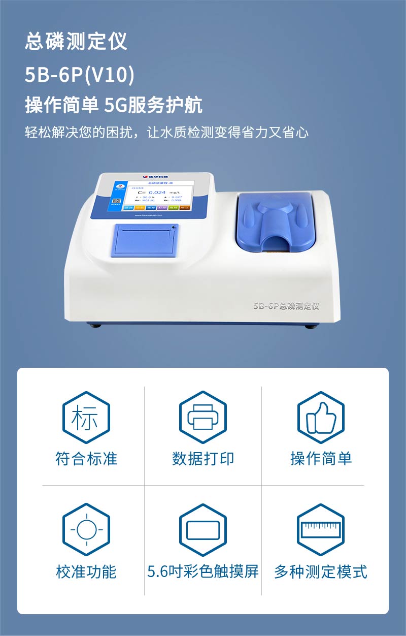 5B-6P(V10)總磷測定儀是連華科技的更新換代產品,專門根據我國水質情況及國家法規要求而開發的一款能使用多種方法測定總磷指標的高檔測定儀,其各項指標符合或高于國家標準,此儀器性能穩定、測量范圍寬、顯示清晰、測量迅速、使用簡單方便,其配套的高檔智能消解儀使測試過程更加安全可靠,配備完善的專業耗材試劑,工作步驟大大減少,測值簡單準確。